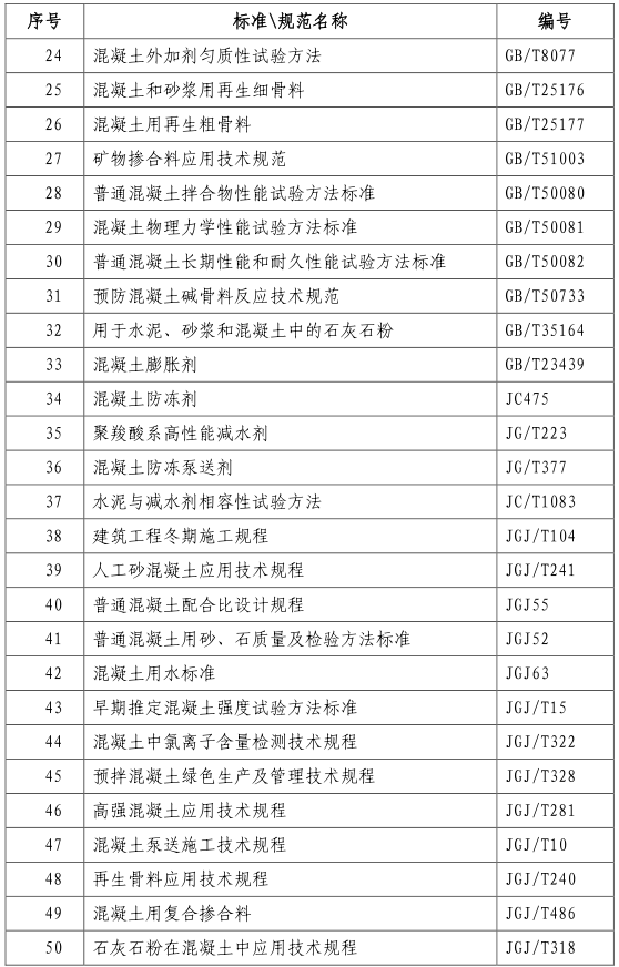 (三)預拌混凝土企業應嚴格按照《混凝土質量控制標準》(GB50164)、《預拌混凝土》(GB/T14902)、《混凝土結構工程施工質量驗收規范》(GB50204)等國家和行業標準規范(附件1),以及合同約定和施工設計文件的技術要求,對原材料質量、混凝土配合比、混凝土性能開展質量檢驗及質量控制工作。