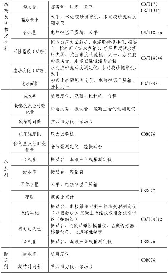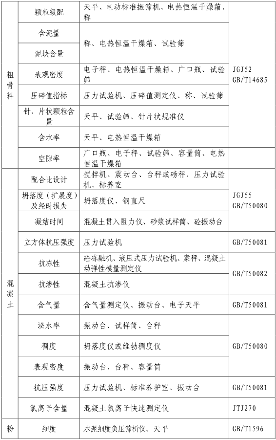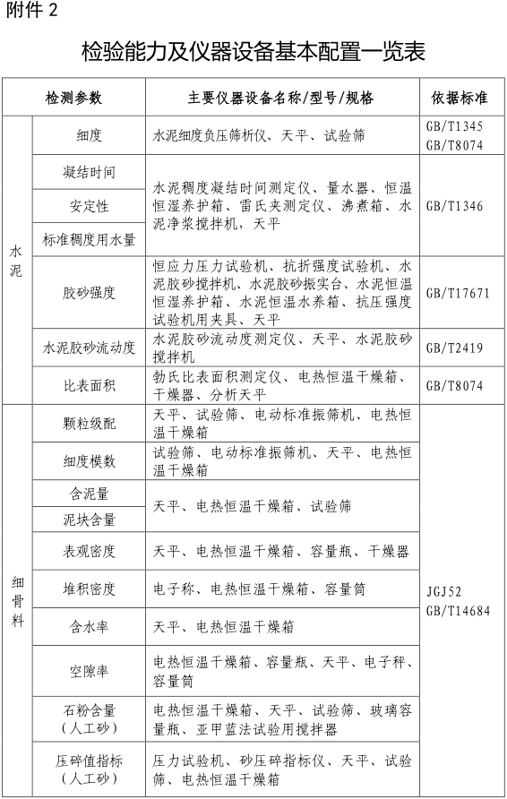 (一)試驗室的檢驗能力應與預拌混凝土企業的生產能力相適應。試驗室根據生產需要進行項目檢驗,按照《檢驗能力及儀器設備基本配置一覽表》(附件2)配備相應的儀器設備。