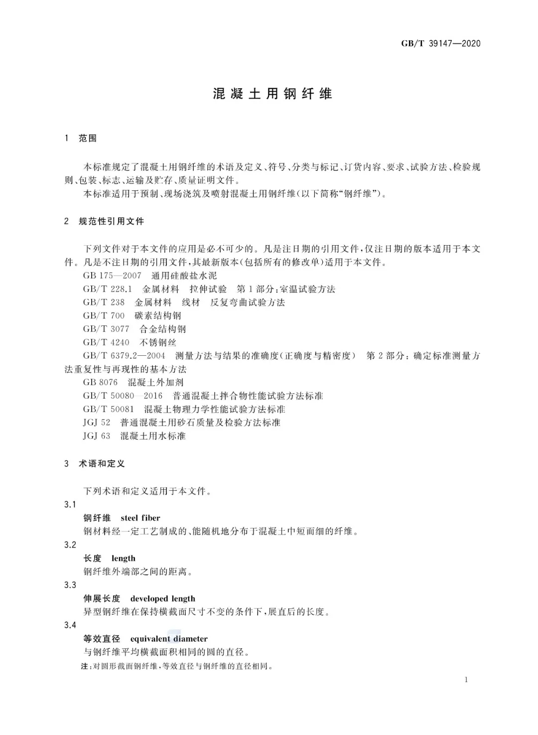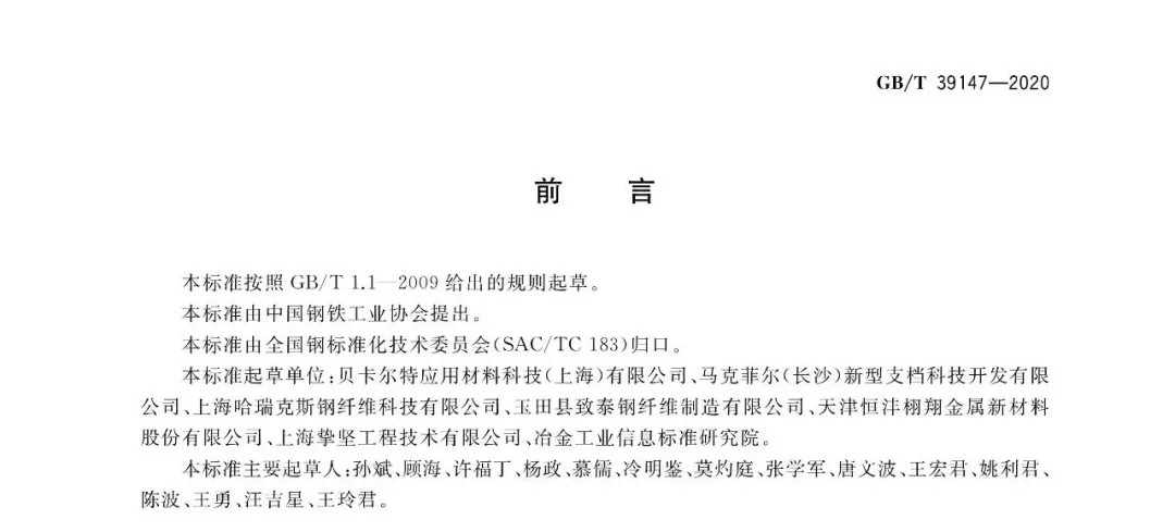 國(guó)家標(biāo)準(zhǔn)!混凝土用鋼纖維 GB/T 39147-2020