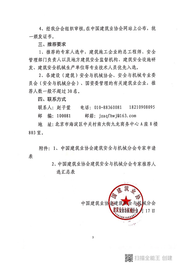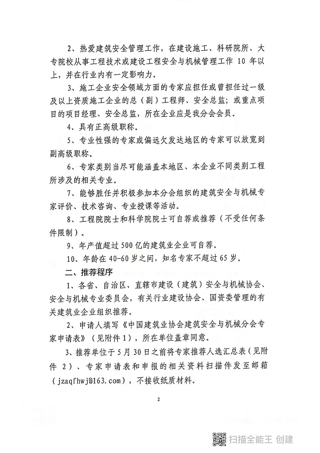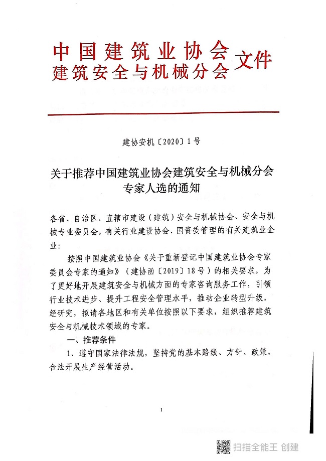 關于推薦中國建筑業協會建筑安全與機械分會專家人選的通知