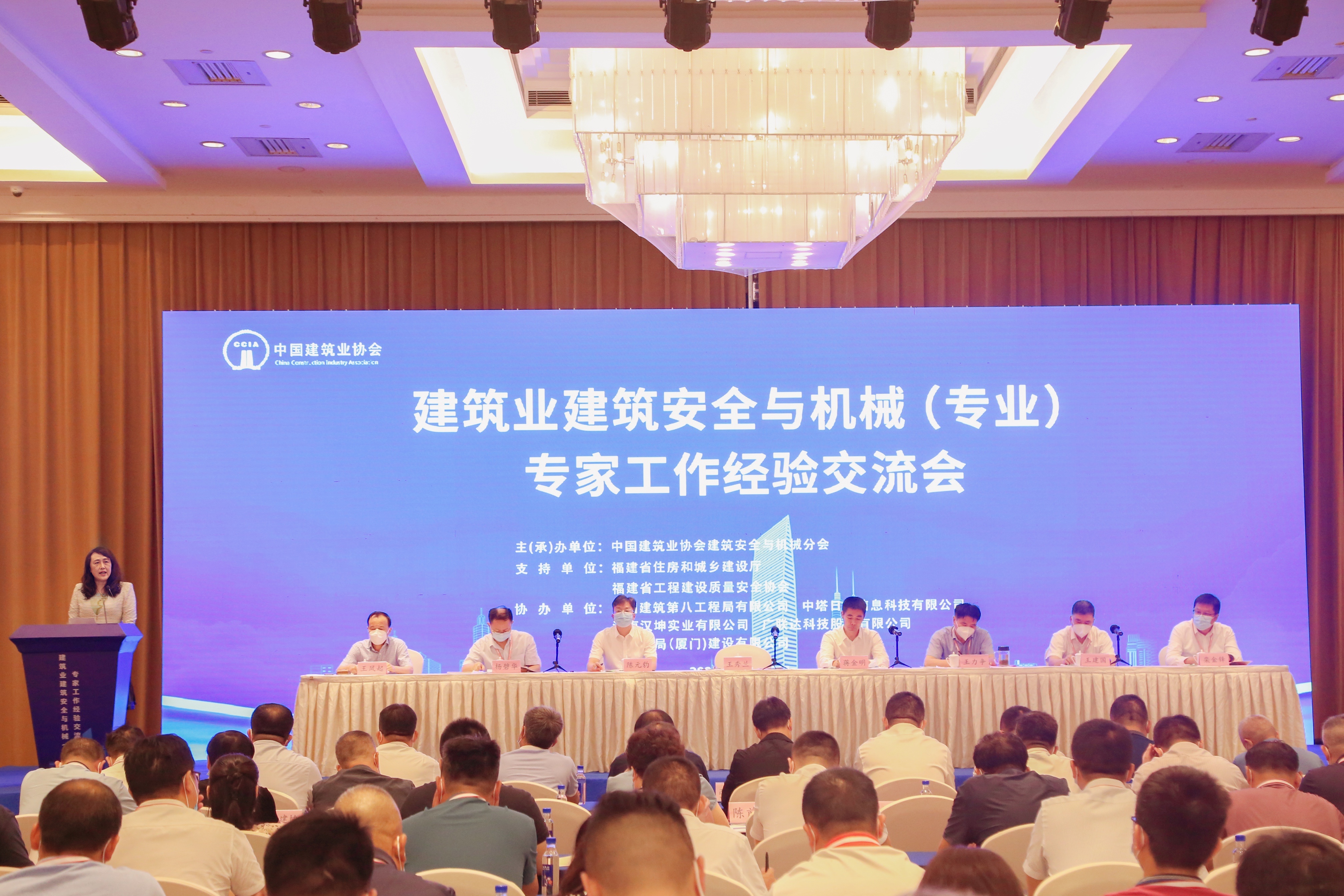 中國建筑業協會副秘書長王秀蘭,福建省住房和城鄉建設廳黨組成員、副廳長蔣金明,中國建筑業協會建筑安全與機械分會會長王力爭,福建省住房和城鄉建設廳工程建設管理處處長陳元豹,湖北省建設工程質量安全監督總站站長楊碧華,福建省工程建設質量安全協會秘書長王建國,中建八局(廈門)建設有限公司董事長欒金鋒等有關領導出席會議,各省區市住建廳(委)主管安全生產負責人,有關城市安監總站、建設(筑)安全協會(安全委員會、建筑安全分會)、有關建設(筑)機械設備協會和企業負責人、安全總監、專家等近700人參加了本次交流會。會議由中國建筑業協會建筑安全與機械分會常務副會長兼秘書長王鳳起主持。