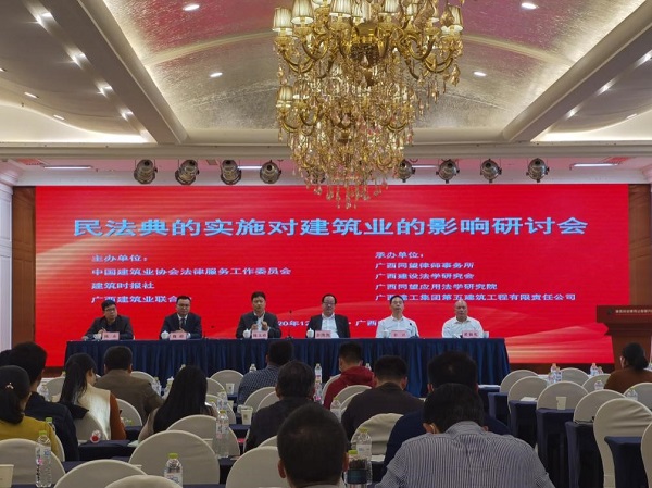 12月21日,由中國建筑業協會法律服務工作委員會、建筑時報社、廣西建筑業聯合會共同主辦,廣西同望律師事務所、廣西建設法學研究會、廣西同望應用法學研究院、廣西建工集團第五建筑工程有限責任公司共同承辦的“民法典的施行對建筑業的影響”研討會,在廣西南寧隆重召開。