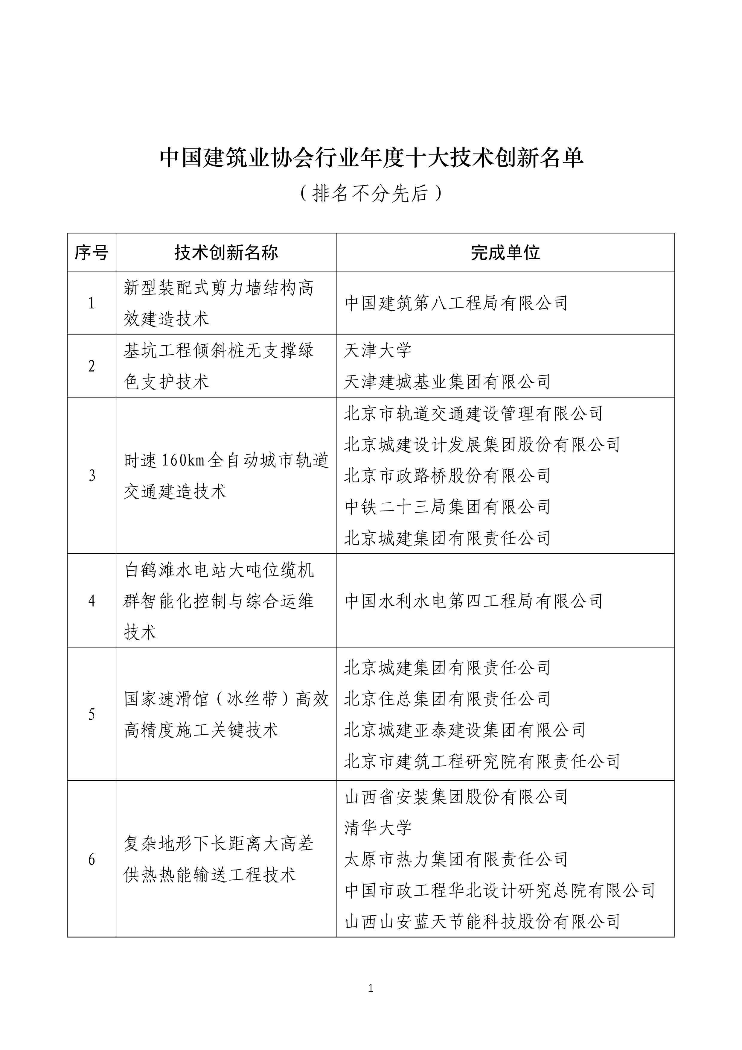 關于公布中國建筑業協會行業年度十大技術創新的通知