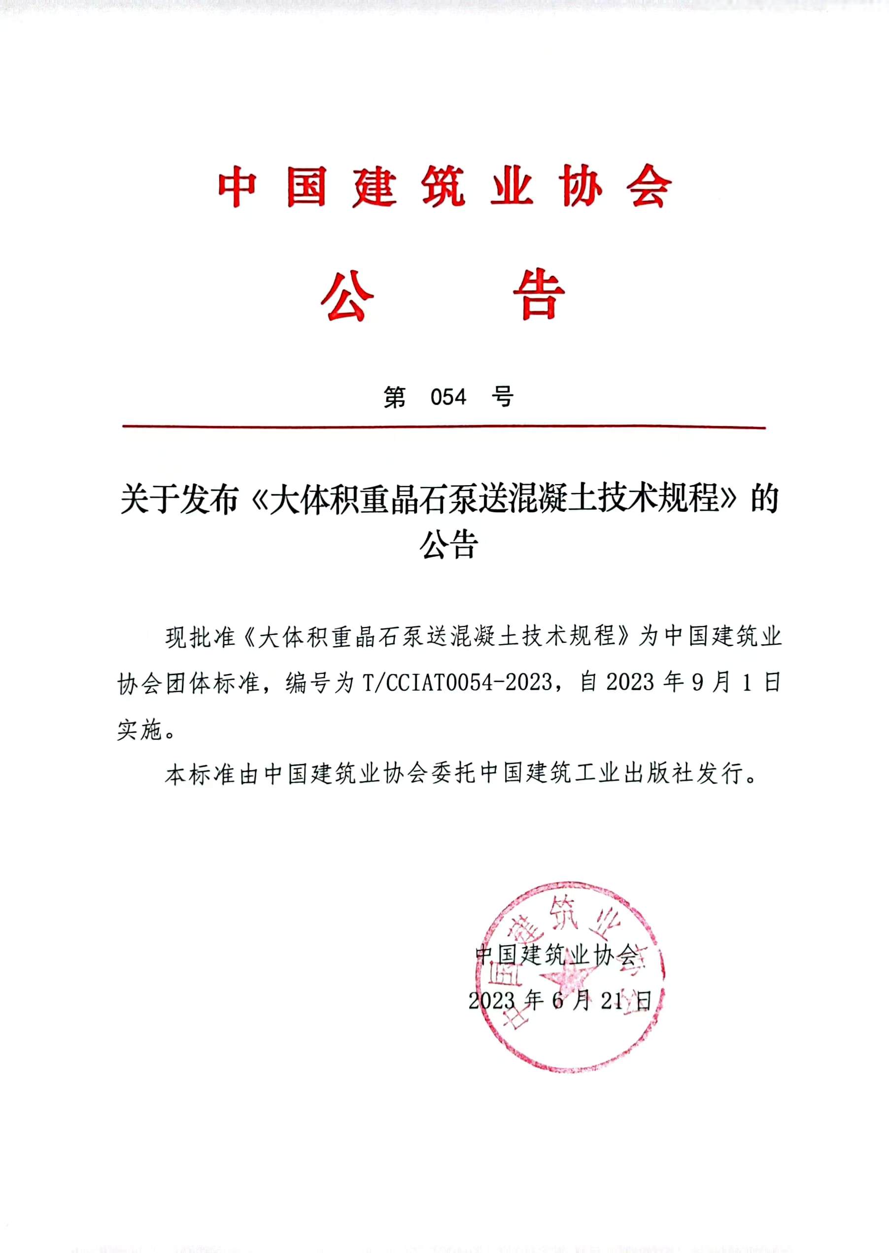 關于發布《大體積重晶石泵送混凝土技術規程》的公告
