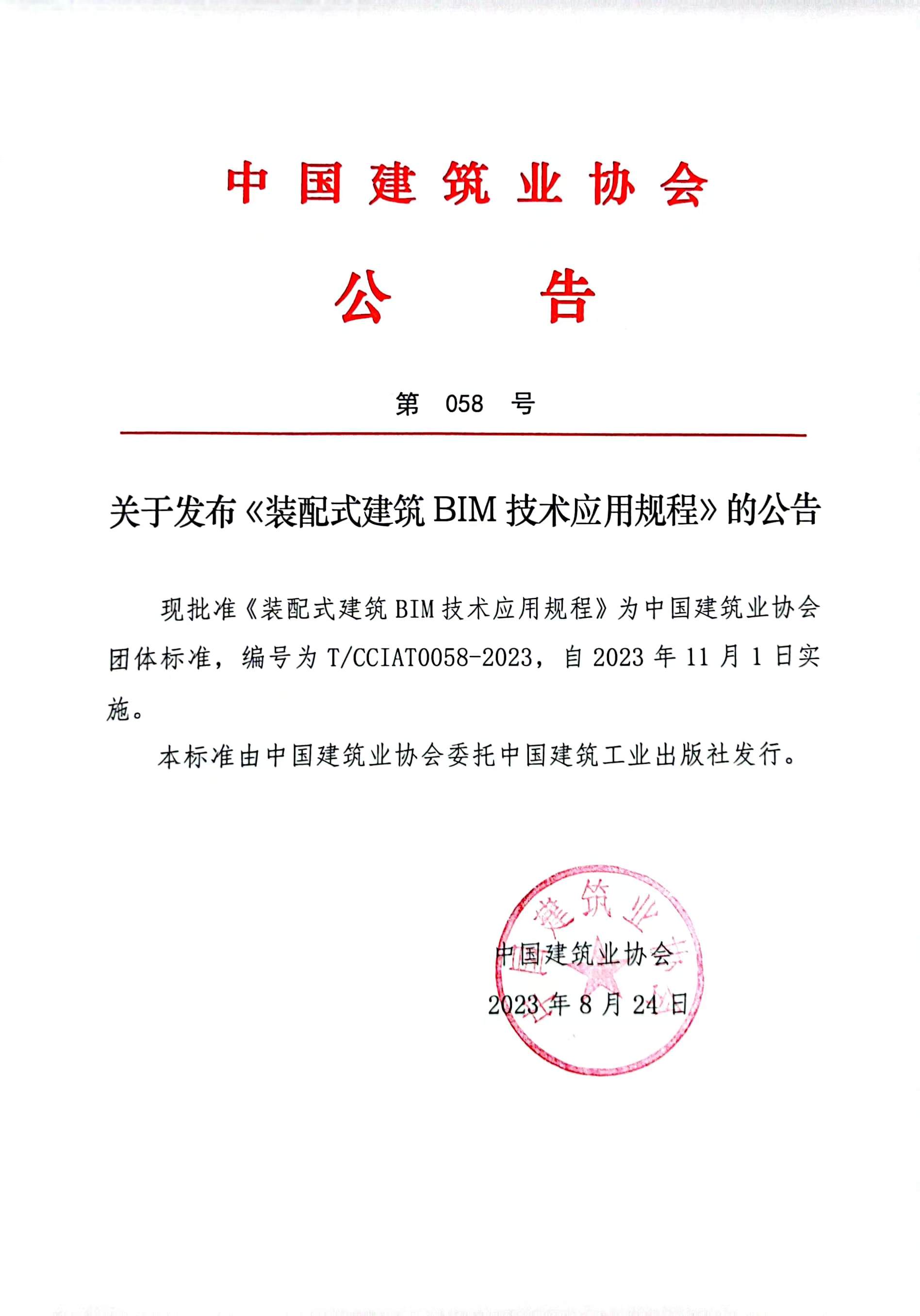 關于發布《裝配式建筑BIM技術應用規程》的公告