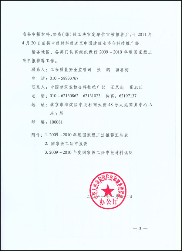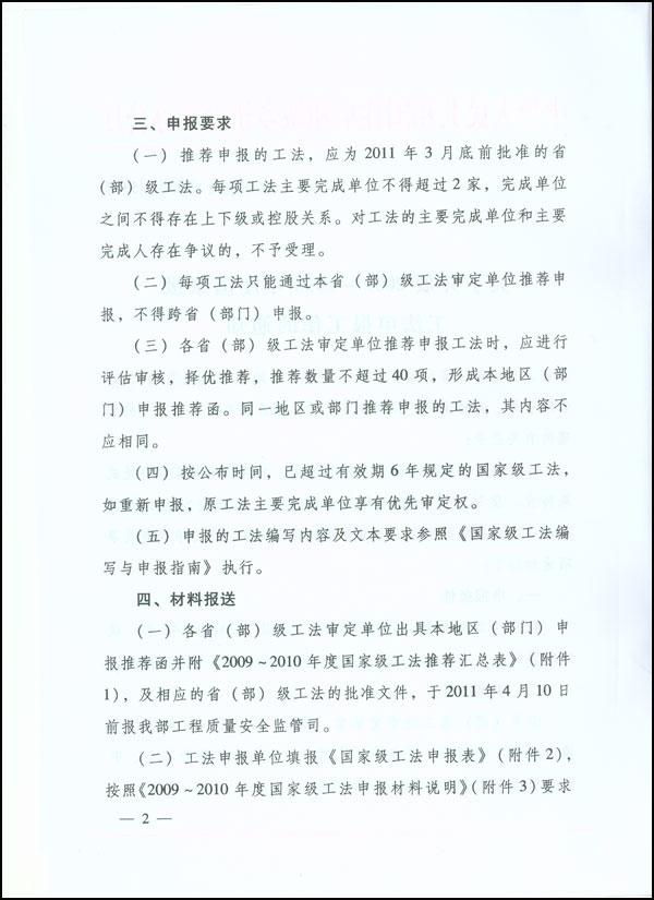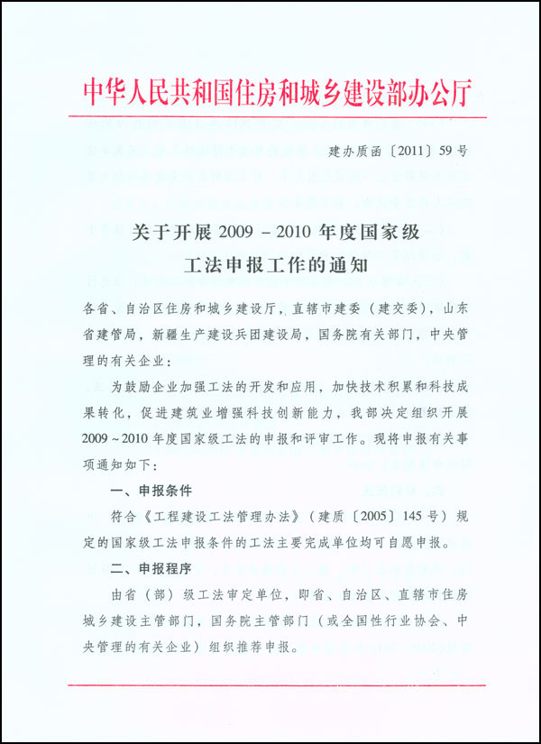 關(guān)于開展2009~2010年度國家級(jí)工法申報(bào)工作的通知