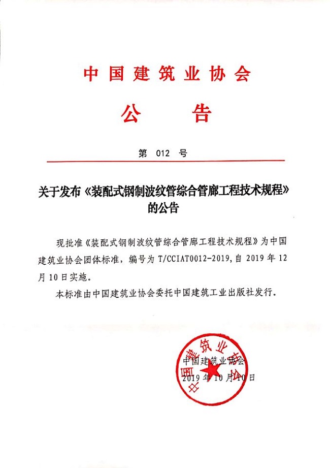 關于發布《裝配式鋼制波紋管綜合管廊工程技術規程》的公告