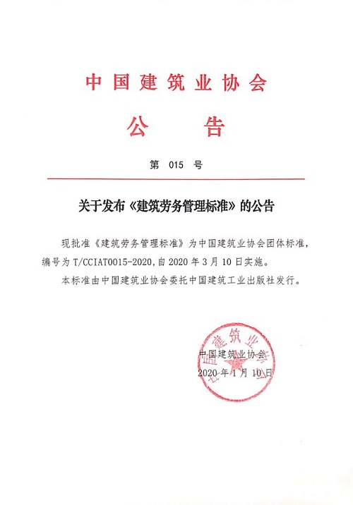關于發布《建筑勞務管理標準》的公告