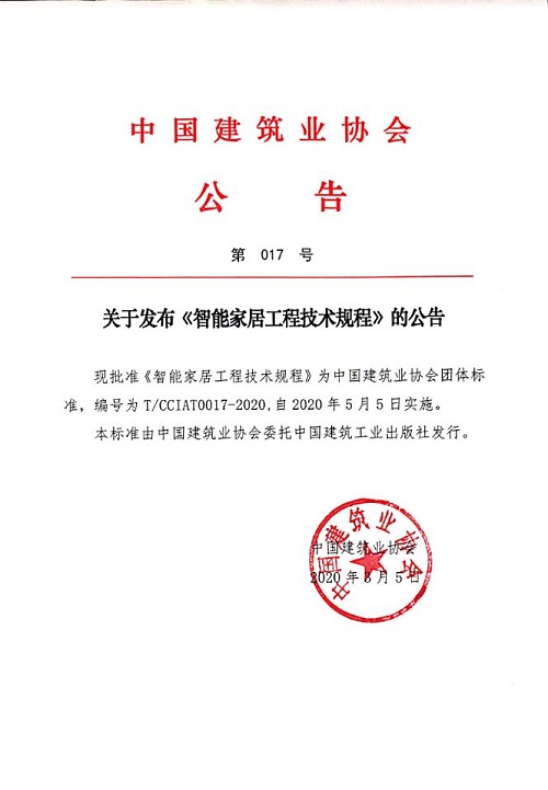 關于發布《智能家居工程技術規程》的公告