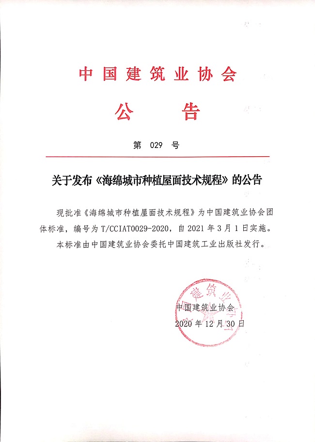 關于發布《海綿城市種植屋面技術規程》的公告