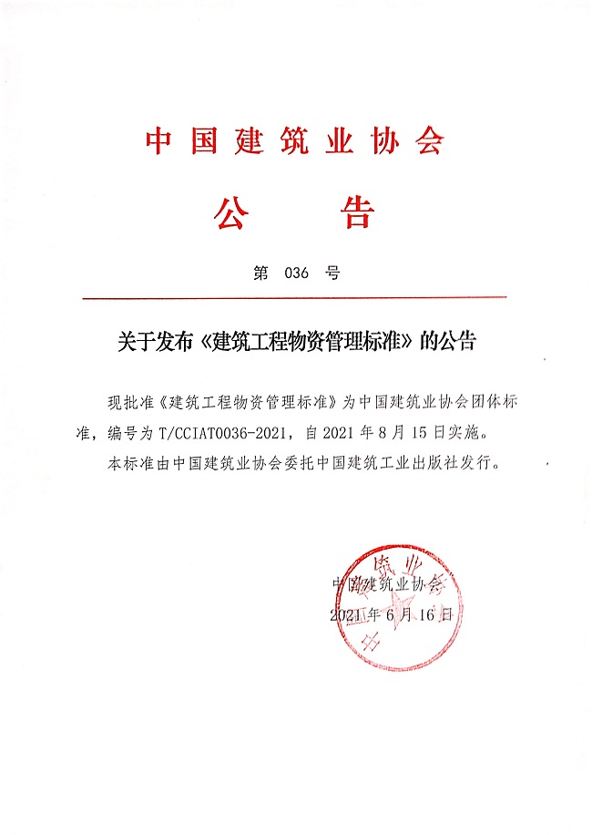 關于發布《建筑工程物資管理標準》的公告