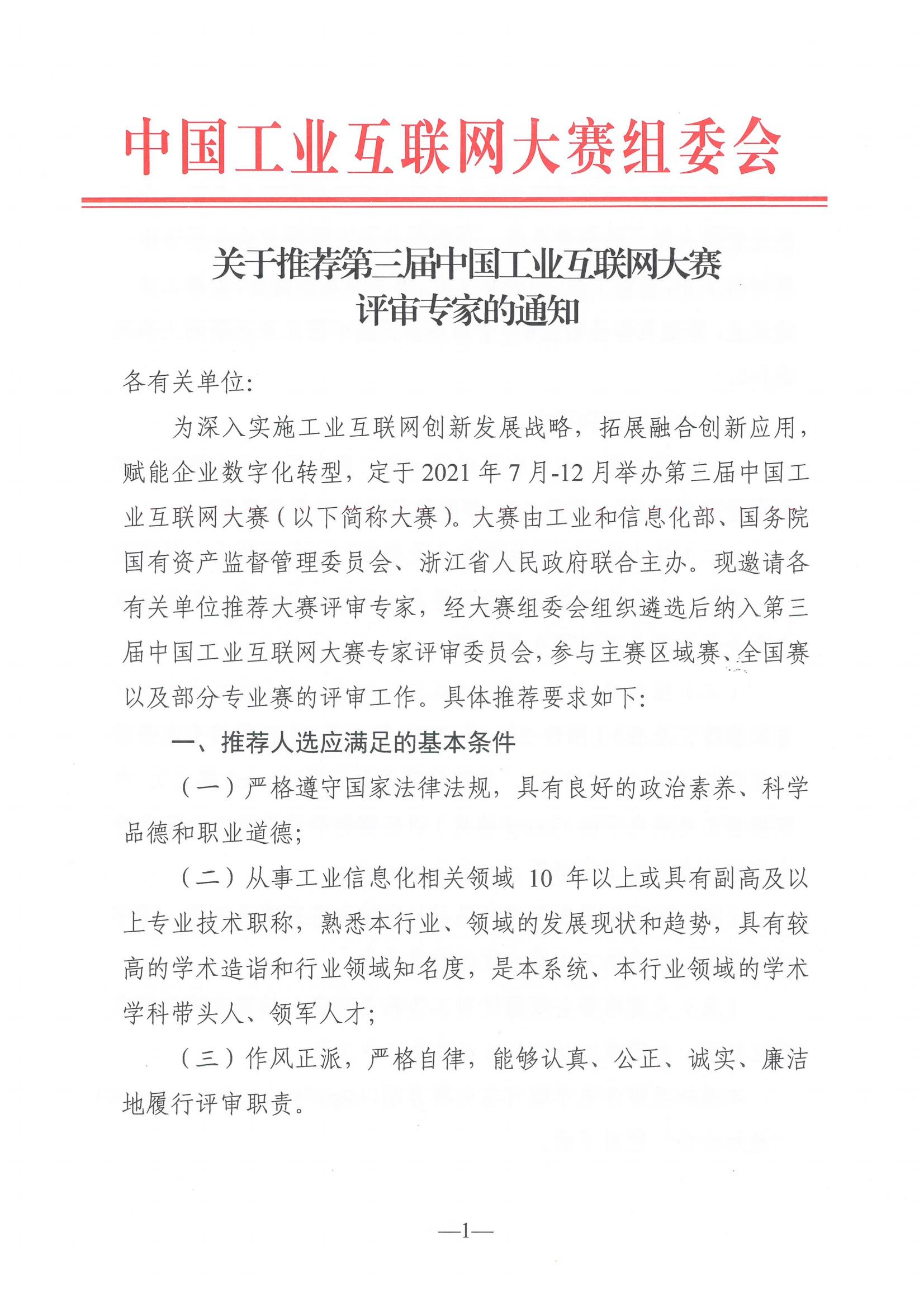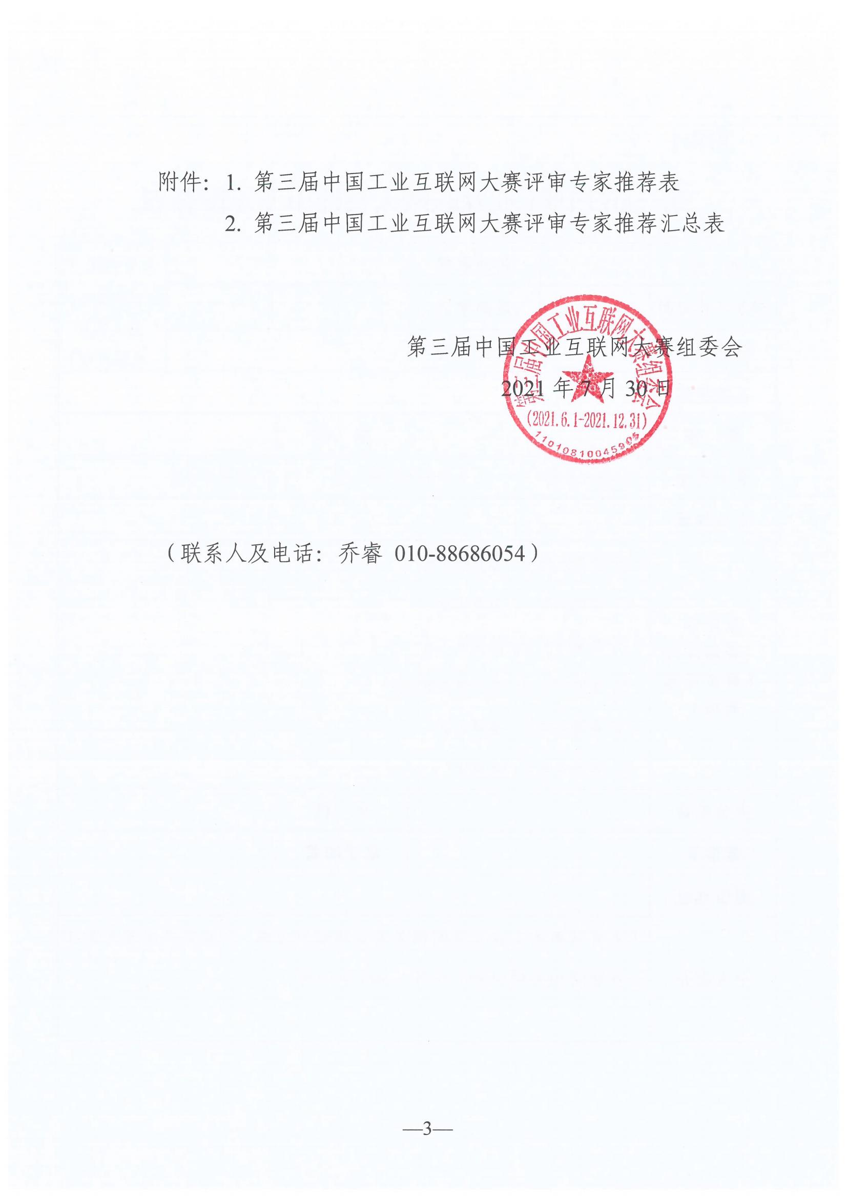 轉發《關于推薦第三屆中國工業互聯網大賽評審專家的通知》