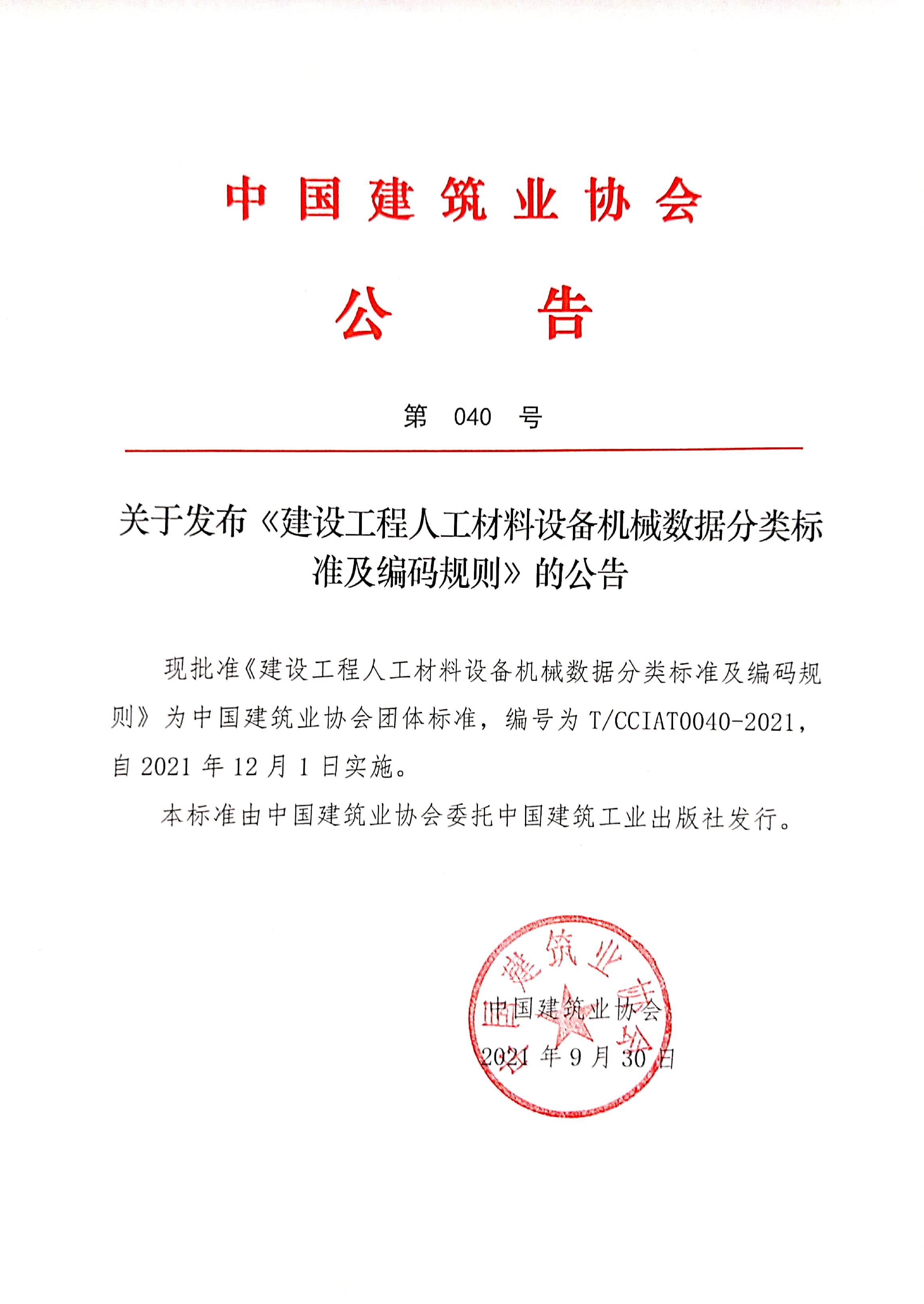 關(guān)于發(fā)布《建設(shè)工程人工材料設(shè)備機械數(shù)據(jù)分類標準及編碼規(guī)則》的公告