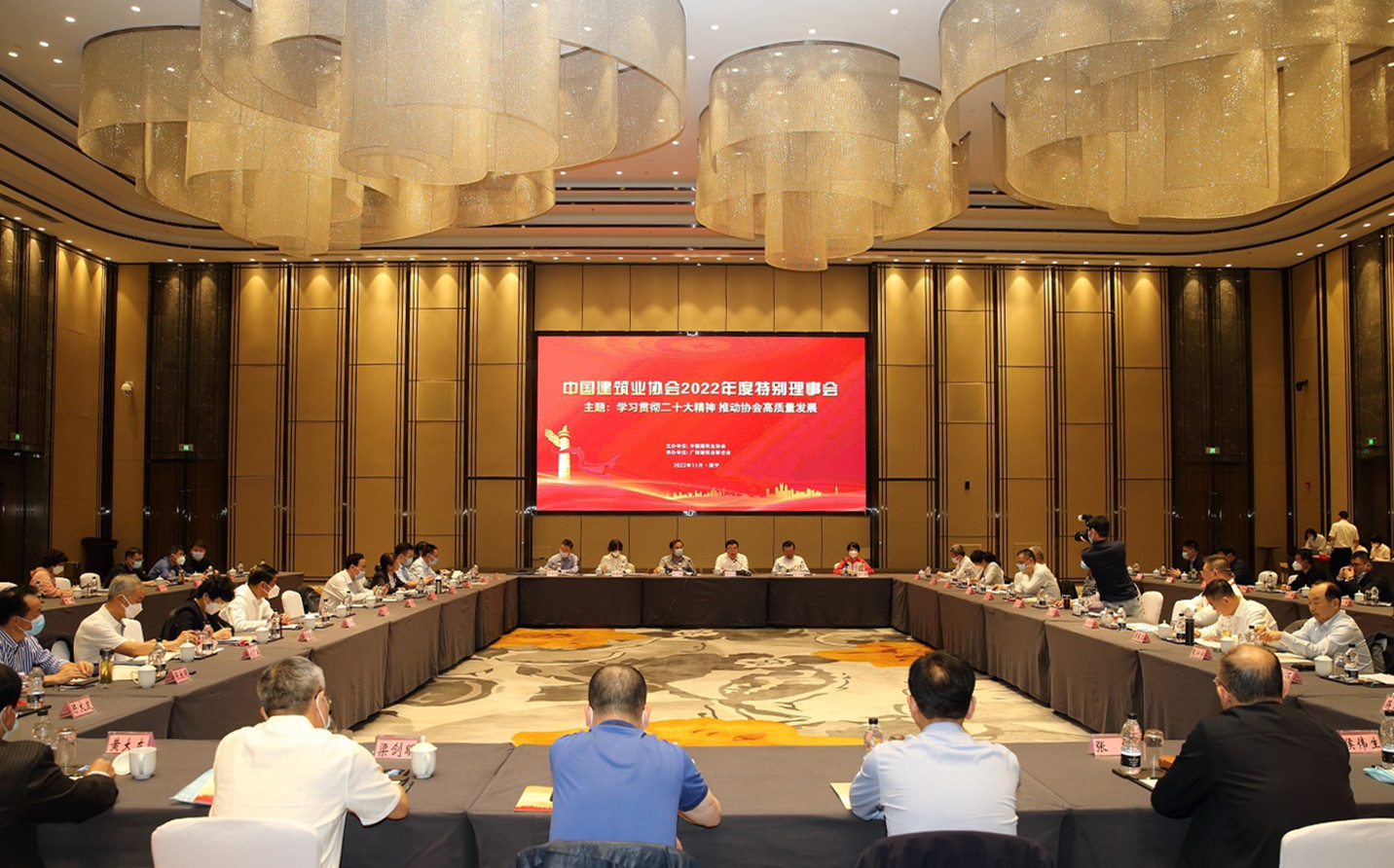 11月24日,中國建筑業協會在南寧召開2022年度特別理事會。中國建筑業協會會長齊驥、副會長吳慧娟,監事會監事長朱正舉出席會議,副會長兼秘書長劉錦章主持會議。來自全國18個地區和6個行業的特別理事共40余人參會。