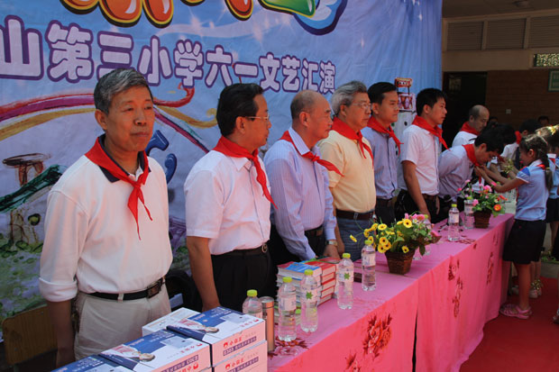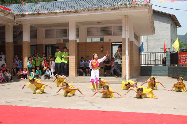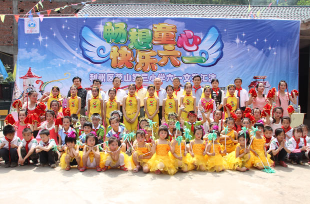 捐贈儀式之后,榮山三小的小演員們表演了精彩的文藝節目。文藝表演結束,各位領導和孩子們集體合影留念。