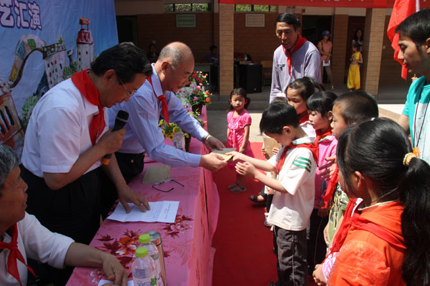 首先,少先隊員們給前來看望他們的伯伯、阿姨們佩戴紅領巾,升旗手升起鮮艷的五星紅旗,榮山鎮第三小學楊敏校長向來賓介紹學校情況。緊接著,中國建筑業協會徐義屏副會長、四川省建筑業協會楊乾芳執行會長和有關負責同志先后致辭。徐義屏副會長在致辭中說,“花園小學是中國建筑業協會在5.12特大地震后捐建的一座希望小學。協會職工對學校的教育情況、同學們的學習情況經常掛在心上。尤其是考慮到花園小學地處山區、辦學條件艱苦、經濟基礎薄弱、一些學生的家境貧寒,常常因交不起學費而發愁。根據這個實際情況,我們協會黨總支組織開展了‘發揚雷鋒精神,捐助貧困學生’活動。協會黨員積極捐款,非黨同志也踴躍參加。今天,在祝賀小朋友們自己的節日時,我們帶來了捐助10名貧困學生的費用,還給同學們帶來了部分學習工具書。雖然數量有限,但表達了對同學們的關注、關心、關愛的情感,體現了中國建筑業協會的愛心。希望能對貧困同學的學習有所幫助,順利完成學業”。接下來,徐義屏副會長代表中國建筑業協會向花園小學贈送工具書,向花園小學10名貧困學生捐贈助學金并簽署“幫扶協議”。四川省建筑業協會為花園小學的“三好學生”、“優秀少先隊員”等頒發了獎品,向花園小學的老師們贈送了慰問品。隨后,花園小學的學生代表發言,謝謝中國建筑業協會和四川省建筑業協會對花園小學的關愛、對貧困學生的資助,表達了好好學習、長大后報效祖國的決心。學生家長代表也發了言,希望同學們在感恩中奮力前行,把愛的火炬傳遞下去,加倍努力學習,將來把家鄉建設得更加美好,把祖國建設得更加強大。