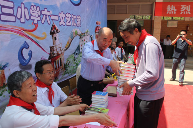 徐義屏副會長代表中國建筑業協會向花園小學贈送工具書