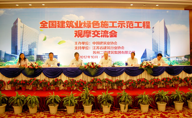 為進(jìn)一步促進(jìn)建筑業(yè)發(fā)展方式轉(zhuǎn)變,建設(shè)資源節(jié)約型、環(huán)境友好型社會(huì),加強(qiáng)和促進(jìn)建筑業(yè)節(jié)能減排與綠色施工,中國建筑業(yè)協(xié)會(huì)根據(jù)鄭一軍會(huì)長關(guān)于“協(xié)會(huì)要把加強(qiáng)和促進(jìn)建筑節(jié)能減排和綠色施工作為今明兩年工作的重中之重,抓住不放,抓出成效”的指示,自2010年起,在行業(yè)內(nèi)率先開展綠色施工示范工程創(chuàng)建活動(dòng)。兩年來,已有兩批共93項(xiàng)工程被列為全國建筑業(yè)綠色施工示范工程。為交流創(chuàng)建全國建筑業(yè)綠色施工示范工程經(jīng)驗(yàn),發(fā)揮示范工程的集聚輻射帶動(dòng)作用, 10月11-12日,中國建筑業(yè)協(xié)會(huì)在蘇州舉辦了全國建筑業(yè)綠色施工示范工程觀摩交流會(huì),并發(fā)布了《全國建筑業(yè)綠色施工示范工程申報(bào)與驗(yàn)收指南》。中國建筑業(yè)協(xié)會(huì)副會(huì)長兼秘書長吳濤、江蘇省建筑行業(yè)協(xié)會(huì)會(huì)長高學(xué)斌出席會(huì)議并講話。會(huì)議由中建協(xié)副秘書長劉宇林主持。本次觀摩交流會(huì)得到了江蘇省建筑行業(yè)協(xié)會(huì)和蘇州二建建筑集團(tuán)有限公司的大力支持,來自全國建筑業(yè)企業(yè)和相關(guān)行業(yè)協(xié)會(huì)的代表千余人參會(huì),規(guī)模空前。