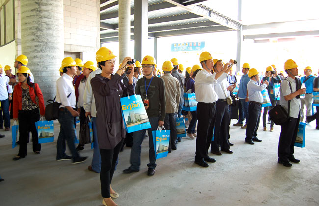 與會(huì)代表參觀第二批全國建筑業(yè)綠色施工示范工程——中新生態(tài)大廈土建總包工程