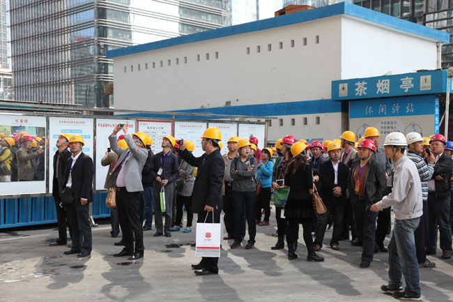 交流會特邀中國建筑業協會綠色施工分會副會長兼秘書長肖緒文、中國建筑一局(集團)有限公司項目副總工李洪海、廣聯達軟件股份有限公司總監劉剛做專家講座,中國建筑第八工程局有限公司、中鐵十一局集團有限公司、中國華西企業有限公司做會議交流。與會代表實地觀摩了由中建一局集團建設發展有限公司承建的目前我國在建第一高樓平安金融中心(660米)和深圳市建工集團股份有限公司承建的安置房工程,將其科技水平、技術力量、工藝創新、綠色理念等展現給參會代表,達到了預期效果。