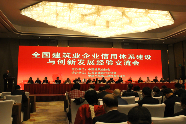 11月26~27日,中國(guó)建筑業(yè)協(xié)會(huì)在南京召開(kāi)全國(guó)建筑業(yè)企業(yè)信用體系建設(shè)與創(chuàng)新發(fā)展經(jīng)驗(yàn)交流會(huì)。中國(guó)建筑業(yè)協(xié)會(huì)會(huì)長(zhǎng)王鐵宏,江蘇省住房和城鄉(xiāng)建設(shè)廳黨組書(shū)記顧小平,中國(guó)建筑業(yè)協(xié)會(huì)副會(huì)長(zhǎng)吳慧娟、副會(huì)長(zhǎng)兼秘書(shū)長(zhǎng)吳濤、建筑工程技術(shù)專家委員會(huì)副主任徐義屏,江蘇省建筑行業(yè)協(xié)會(huì)會(huì)長(zhǎng)張寧寧,中國(guó)建筑業(yè)協(xié)會(huì)副會(huì)長(zhǎng)吳建軍、陳世華、林秋美、耿裕華、韓平等出席會(huì)議。中國(guó)建筑業(yè)協(xié)會(huì)副會(huì)長(zhǎng)兼秘書(shū)長(zhǎng)吳濤、江蘇省住房和城鄉(xiāng)建設(shè)廳黨組書(shū)記顧小平分別致辭。各地區(qū)和有關(guān)行業(yè)建筑業(yè)(建設(shè))協(xié)會(huì)負(fù)責(zé)人、中國(guó)建筑業(yè)協(xié)會(huì)會(huì)員單位代表等約700人參加會(huì)議。會(huì)議由中國(guó)建筑業(yè)協(xié)會(huì)副秘書(shū)長(zhǎng)李蓬主持。