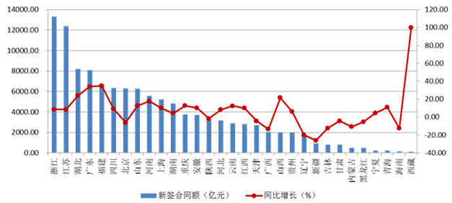 圖3  2018年上半年各地區建筑業企業新簽合同額及增速