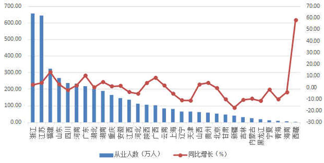 圖5  2018年上半年各地區建筑業從業人數及增速
