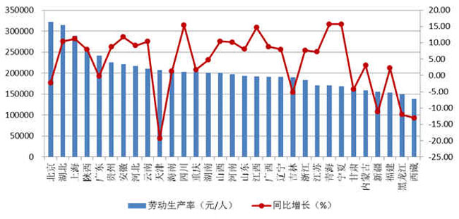 圖6  2018年上半年各地區按建筑業總產值計算的勞動生產率及增速