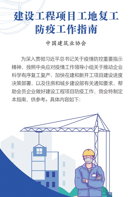 中國建筑業協會發布《建設工程項目工地復工防疫工作指南》