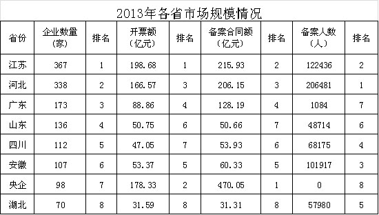2013年,我省企業在京市場開拓均比往年有明顯提升,全年施工人數達到13.28萬人,完成建筑業總產值399.43億元,同比上年增長11.89%,在施合同額429.8億元、面積1924.29萬平方米,同比上年增長19.46%、10%,總包、及專業新簽合同額214.8億元,同比上年增長49.02%。企業開票198.68億元,同比上年增加13.11%其中:總包及專業開票131.55億元,同比上年增加9.04%,勞務開票67.13億元,同比上年增加22.03%。企業上繳營業稅及附加6.38億元,同比上年增加9.62%。各企業主要經濟指標排名如下: