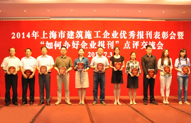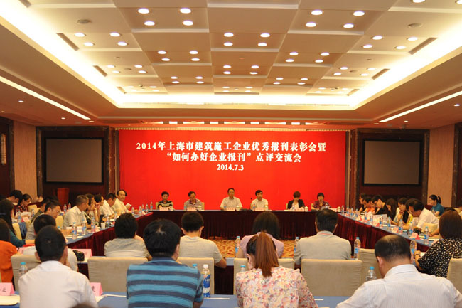 7月3日,上海市建筑施工行業協會召開2014年上海市建筑施工企業優秀報刊表彰會暨“如何辦好企業報”專題交流會,上海市建設和交通委思想政治工作研究會秘書長杭財寶、《建筑時報》原總編李曉華、《上海建筑建材業》原副主編楊瑛、《建筑時報》建筑法苑欄目主編孫賢程等四位優秀報刊評委和施工協會副會長兼秘書長高志海以及施工企業分管領導、企業報刊主編、編輯、企業文化建設工作者近80人參加會議。