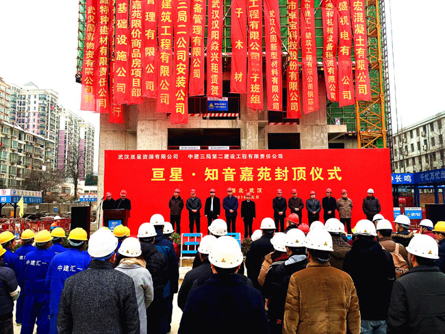 近日,武漢亙星•知音嘉苑項(xiàng)目在漢陽舉行簡(jiǎn)樸的主體結(jié)構(gòu)封頂儀式,武漢工業(yè)控股集團(tuán)有限公司董事長(zhǎng)、黨委書記王法圣、中建三局二公司副總經(jīng)理黃安平,及設(shè)計(jì)院、監(jiān)理公司、雙方管理人員等110余人參加。