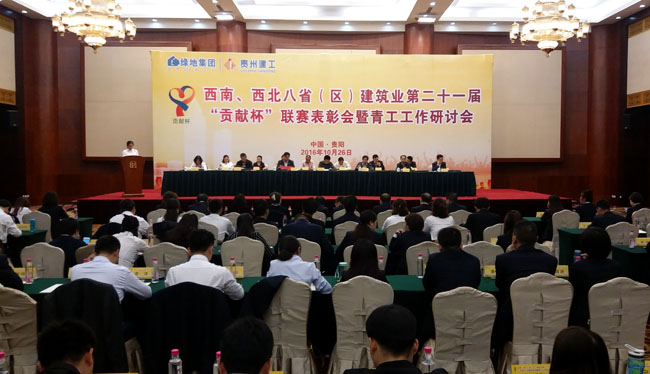 10月26日,由貴州建工集團承辦的西南、西北八?。▍^)建筑業第二十一屆“貢獻杯”聯賽表彰會暨青工工作研討會在貴州隆重召開。貴州建工集團黨委書記、董事長陳世華,共青團貴州省委副書記徐錫廣,貴州省國資委黨委委員、副主任陳健等領導出席表彰大會。來自西南、西北八?。▍^)建工集團的166名青年代表參加會議。