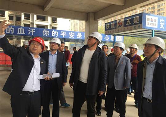 4月14日下午,由西安市城鄉(xiāng)建設(shè)委員會主辦,西安浐灞生態(tài)管理委員會與陜建五建集團承辦的“鐵腕治霾 保衛(wèi)藍天”西安市2017年建設(shè)工地揚塵治理工作現(xiàn)場會在集團公司浐灞•新都匯項目部隆重召開。西安市城鄉(xiāng)建設(shè)委員會副主任蓋文峰,浐灞管委會副主任樊偉,陜建集團副總經(jīng)理張文琪,陜建五建集團總經(jīng)理張曉普出席了此次會議,會議由市建筑業(yè)處處長張小波主持。