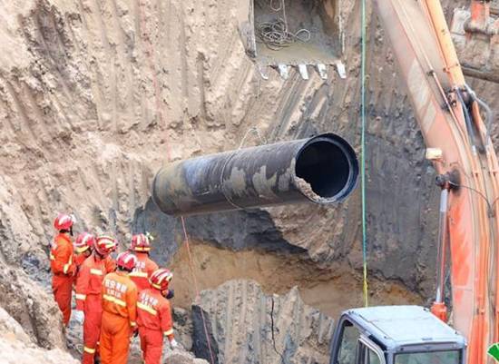 17:00左右,呂斌和消防官兵總指揮在新的一輪商討后,制定出兩套方案。一是從項目項目部現(xiàn)場拿一根直徑80cm、長6米的纏繞壁管。吊裝至開挖的坑道中,在與男孩所在深度保持一致的位置與深井相連接,隨后救援人員由纏繞壁管進入并對機井進行開洞破口,救出被困男孩。這樣既能最大限度的保證救援人員和被困男孩的人身安全。二是消防部門抽調(diào)經(jīng)驗豐富的人員,將繩索挽扣從井口伸入,在適當時機將孩子安全部位套住,逐步提出深井。
