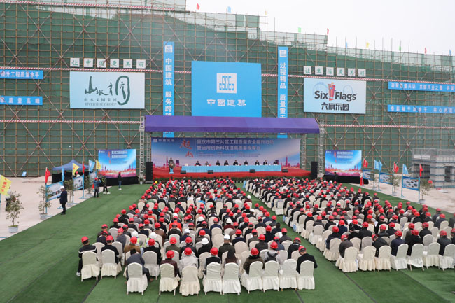 12月5日,中國建筑第二工程局有限公司西南分公司重慶山水度假區(qū)項目舉辦重慶市第三片區(qū)工程質(zhì)量安全提升行動暨運用創(chuàng)新科技提高質(zhì)量觀摩會,重慶市建設(shè)工程質(zhì)量監(jiān)督總站站長鄒云華、重慶市城鄉(xiāng)建設(shè)委員會建管處副處長艾云、璧山區(qū)城鄉(xiāng)建設(shè)委員會黨委書記、主任張玉平,中建二局西南分公司董事長丁威、副總經(jīng)理鄧林峰等參加此次觀摩會,重慶市建筑行業(yè)共計400多人參加了此次活動。