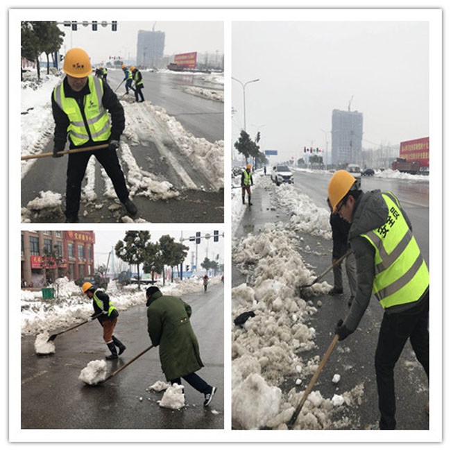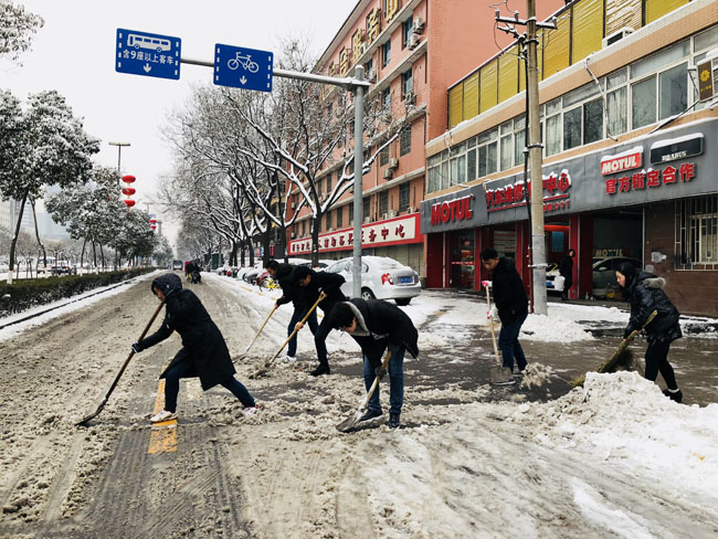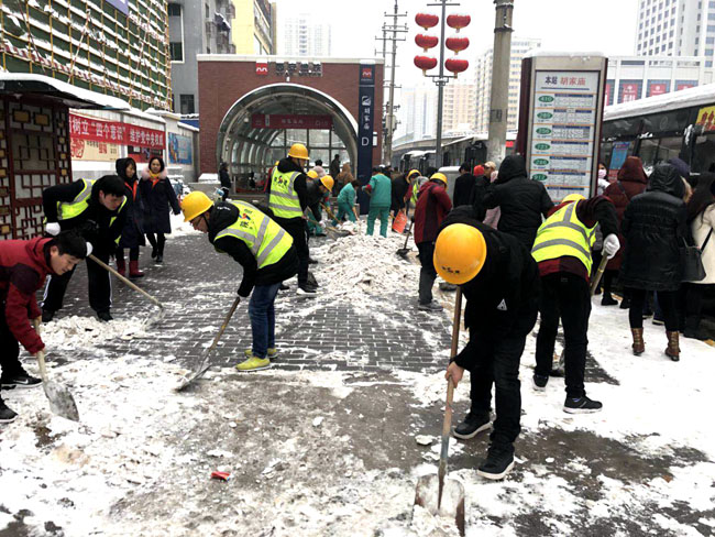 在西安,陜建八建集團機關5個支部的黨員帶頭對企業駐地友誼西路附近的積雪進行清掃,方便行人出行。陜建八建集團恒基項目部組織15名青年職工帶著工具來胡家廟地鐵站,幫助環衛工人將工地臨近地鐵口的積雪清理干凈,為出行的人們帶來方便。陜建八建集團四公司、九公司、巖土公司組成的30名鏟雪志愿者團隊走上街頭,大家手中拿著鐵鍬、掃把等工具,對南二環輔道及人行道上鏟雪,大家相互配合、齊心協力,揮舞著鐵鍬和掃帚,你鏟我掃,為行人們“鏟出”一份平安。