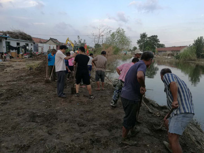 9月10日下午,山東壽光建設集團有限公司組織20人的志愿服務隊,迅速趕赴壽光市紀臺鎮郭家莊村參與災后農村環境衛生整治,為災區人民群眾送去了一份溫暖。在清理現場,員工們個個身先士卒,斗志昂揚,或是揮舞著鐵鍬鏟淤泥和雜草,或是揚起掃把將一堆堆垃圾打掃干凈,或是合力幫助村民整理門前雜物,不畏艱苦,不留死角。雖然天氣悶熱,員工們個個揮汗如雨,但他們卻從未停止清理工作。累了,就在樹蔭下休息;渴了,就喝口礦泉水。奮戰了兩個多小時,清理過的村貌煥然一新,道路變得干凈,衛生變得整潔,受到村委班子和村民們的交口稱贊,為壽光市打贏災后重建攻堅戰發揮了正能量。