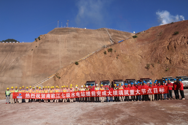 2018年12月23日,老撾南歐江七級電站傳來喜訊,大壩填筑工程量達到356.33萬方,且壩體全斷面填筑至高程565米,比計劃提前了8天完成主要節點工期目標。