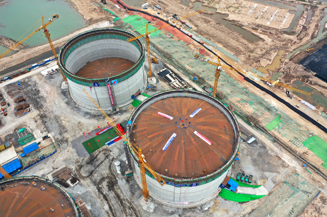 中核五公司負(fù)責(zé)3號、4號低溫罐建設(shè),是該項(xiàng)目的主要建設(shè)方。
