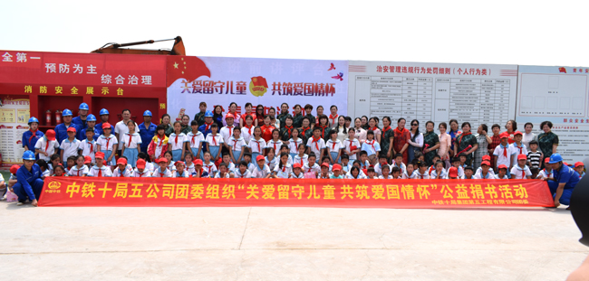 觀摩儀式后中鐵十局集團第五工程有限公司團委、皖北辦事處、界首市城東地表水廠項目部團支部,在六一兒童節來臨之際為留守兒童贈送書籍、彩筆、筆帶、飲料和點心共計84份。在地方扶貧攻堅、關心關愛留守兒童、惠及民生的工作中有我們中鐵十局五公司的一份力、一份心。