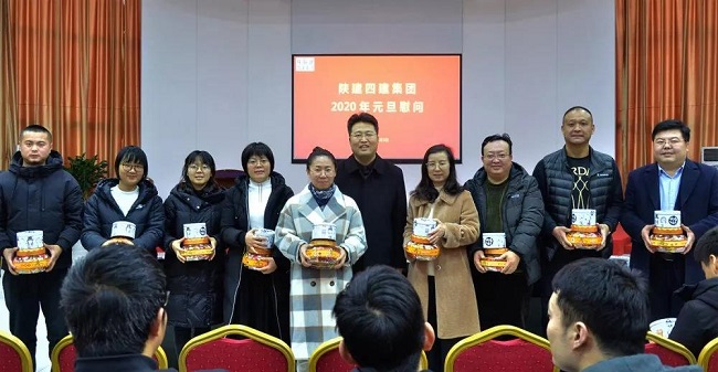 四建集團(tuán)工會副主席、女工委主任成曉娟宣讀了《陜建四建集團(tuán)2020年元旦賀詞》,與會領(lǐng)導(dǎo)向參加慰問活動(dòng)的職工逐一送上糖果、瓜子等新年慰問品。
