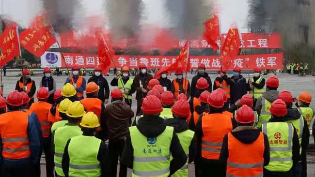 目前,南通四建有2000多名黨員干部職工參與多個城市的應急醫院改建擴建工程施工。10多支“南通四建黨員突擊隊”正日夜戰“疫”,詮釋著南通四建建筑鐵軍的榜樣力量。