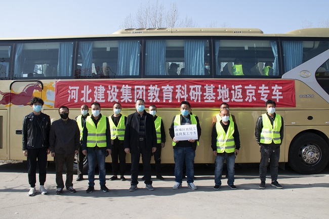 河北建設集團北京新機場教育科研基地項目--“點對點”包車助力建筑工人返崗復工