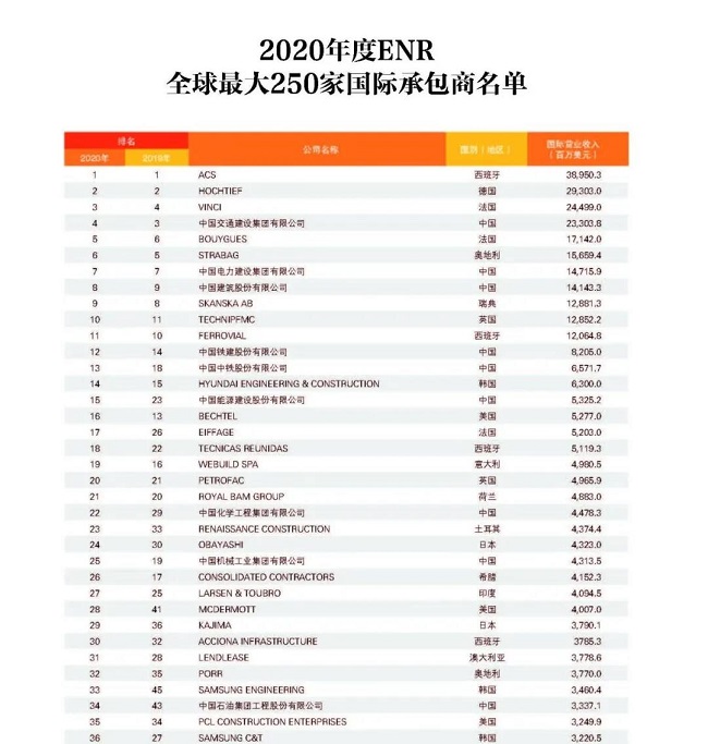 國際工程承包市場再度下行---2020年度ENR全球最大250家國際承包商業(yè)績解讀