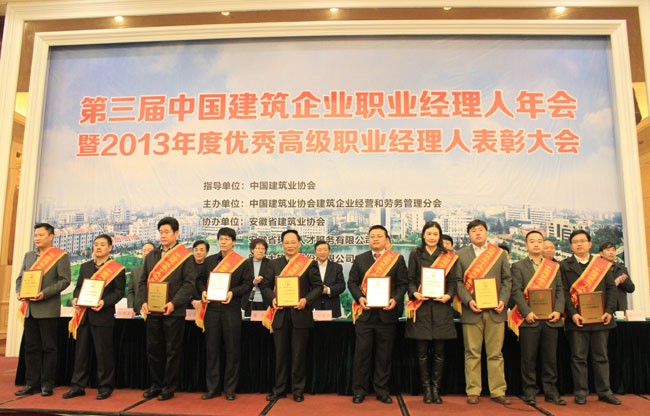 12月6日,由中國建筑業協會建筑企業經營和管理分會主辦的第三屆中國建筑企業職業經理人年會暨2013年建筑企業優秀職業經理人表彰大會在安徽池州舉行。