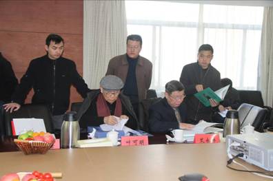 專家組組長葉可明院士與副組長艾永祥查閱工程資料