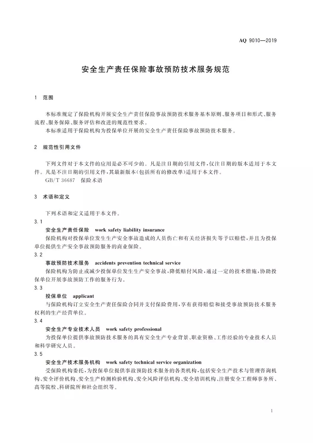 (AQ 9010-2019)安全生產責任保險事故預防技術服務規范